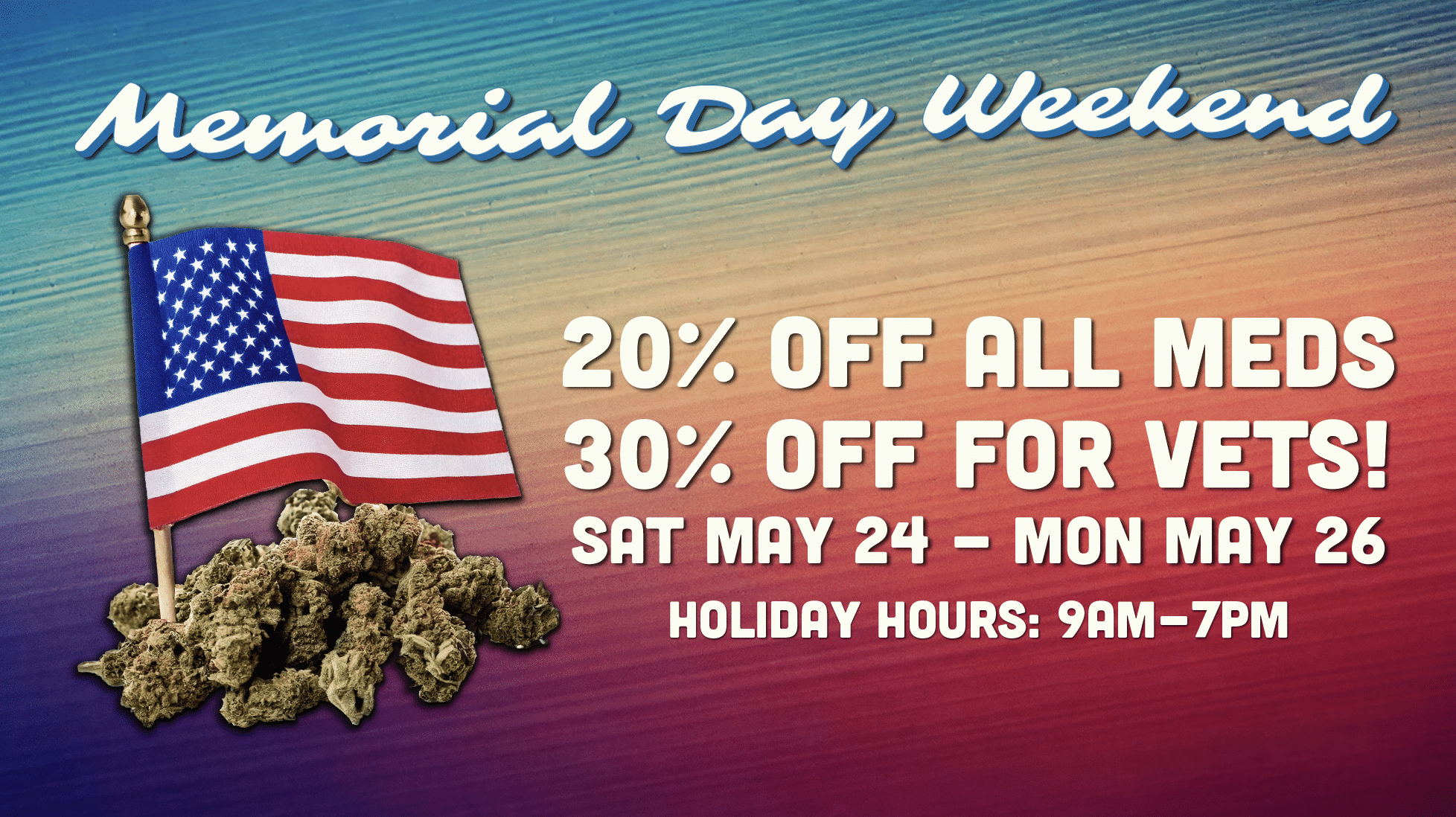Join us Saturday, May 24 through Monday, May 26 as we honor the brave men and women who served our country. 20% off all meds🎖️30% off for veterans! We’re open regular hours on Memorial Day (9am–7pm). Take a moment with us to remember and honor those who gave their all. Thank you for your service 🇺🇸