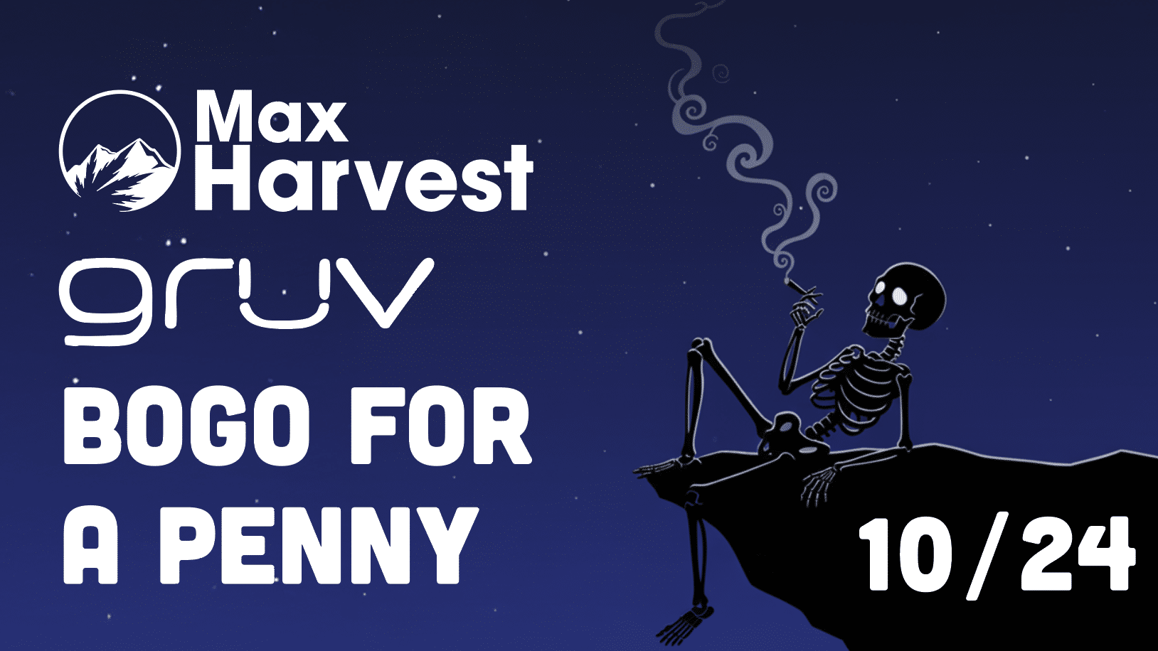 Stop by Friday 10/24 for BOGO for a Penny all Max Harvest and Gruv brand products! Plus enjoy 20% off all other flower for Flower Friday. Deals do not stack