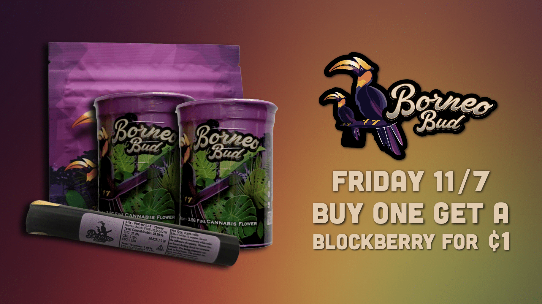 Join us this Friday, 11/7, for buy any Borneo get a Blockberry for ¢1. Plus 20% off all other flower! Deals do not stack